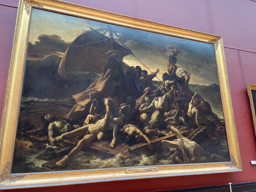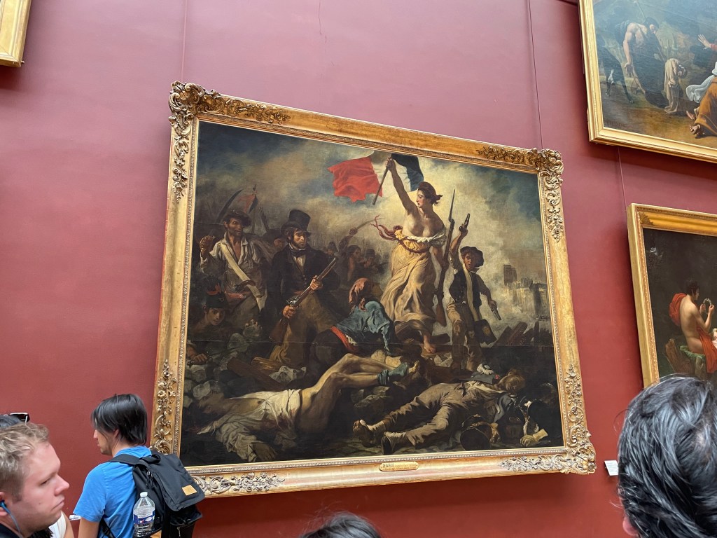 We make our way to the back of the gallery and into another. Huge canvases. I look over and it’s the Raft of the Medusa. Another really wonderful Delacroix that I didn’t remember was here. Emily and I are so excited. And then a little ways down, Liberty Leading the People. Ok, I think we can go now. We are both so happy.