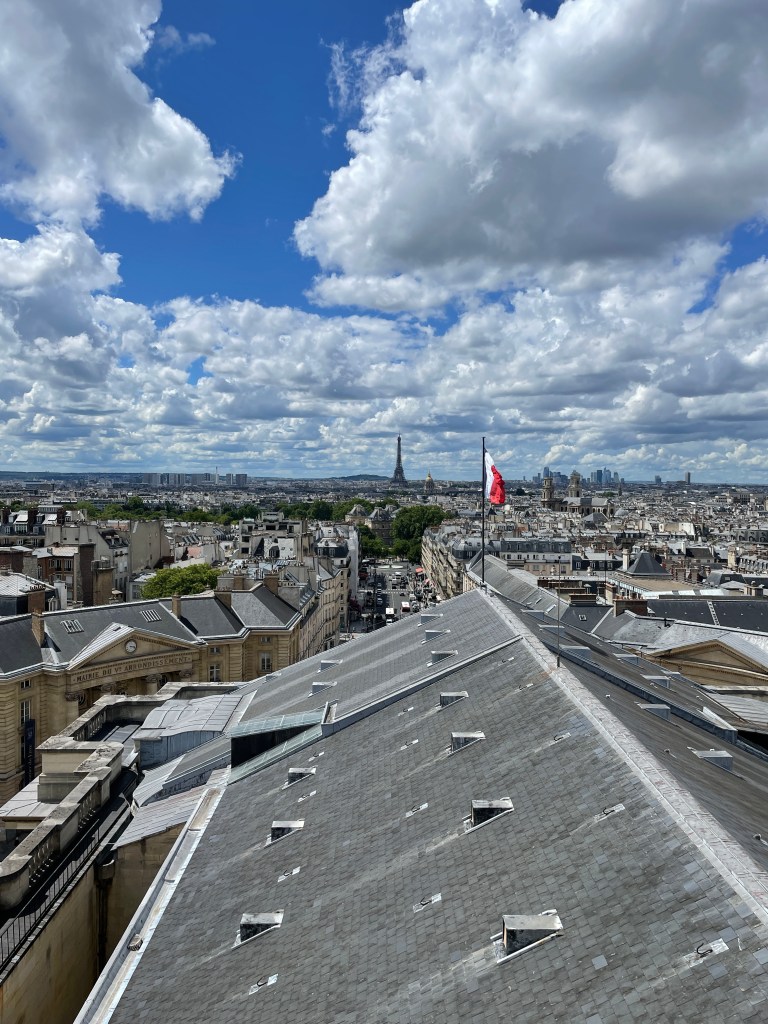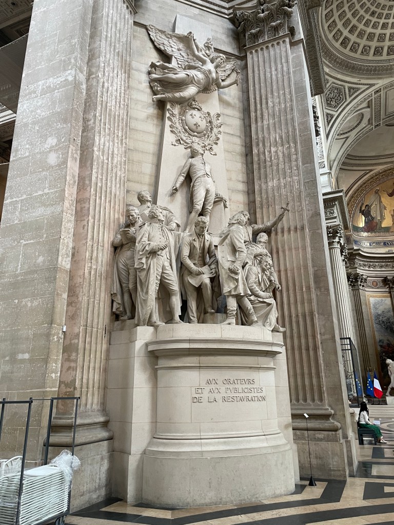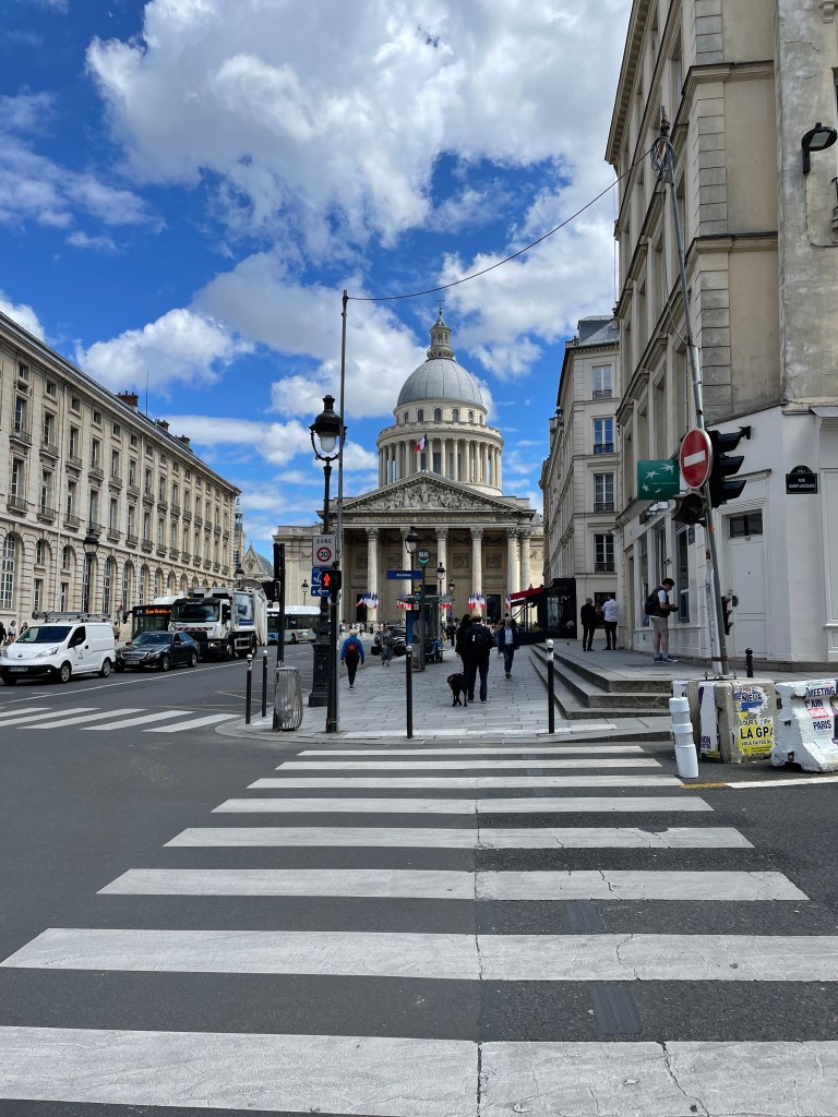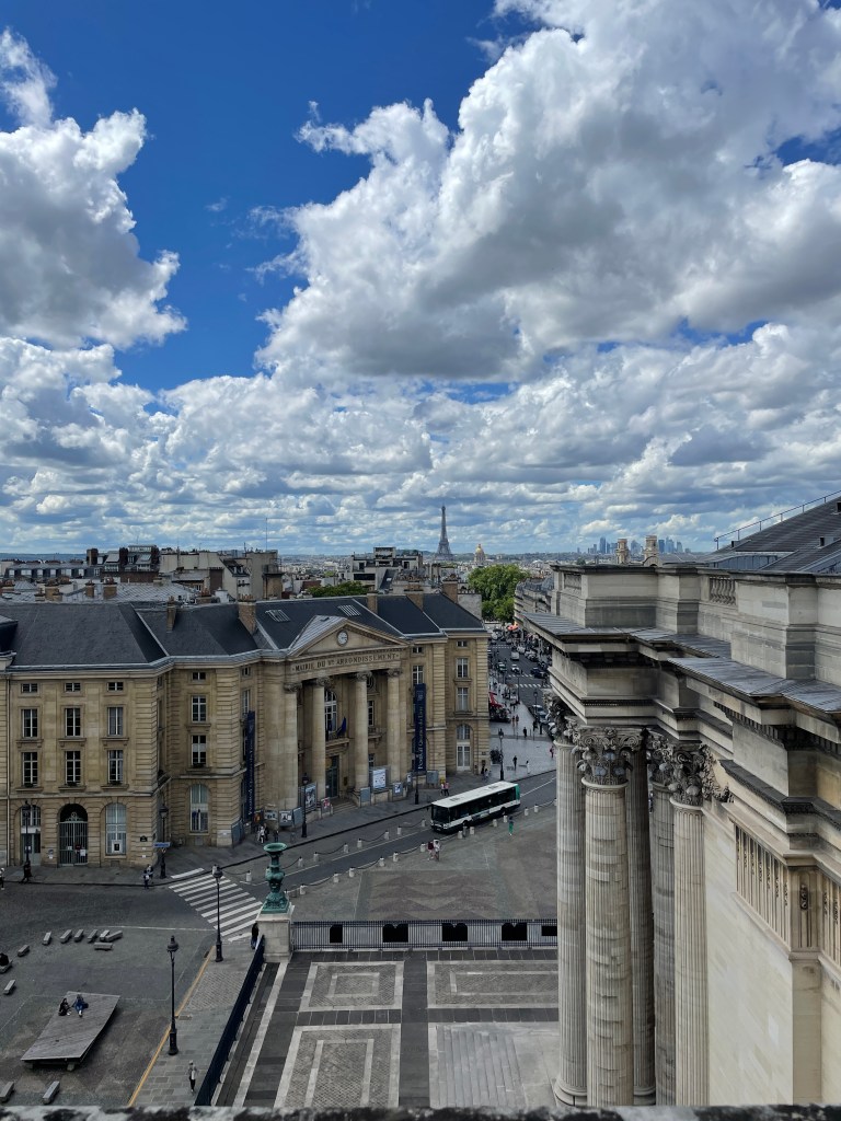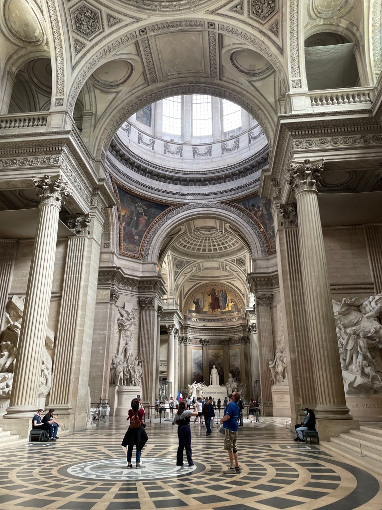 We make our way to the Pantheon. We want to see Marie Curie’s tomb. Emily loves her. I do too, but this was important for Emily. We see the narthex, up to the dome to see the view of Paris, then down into the crypt. So many important people.