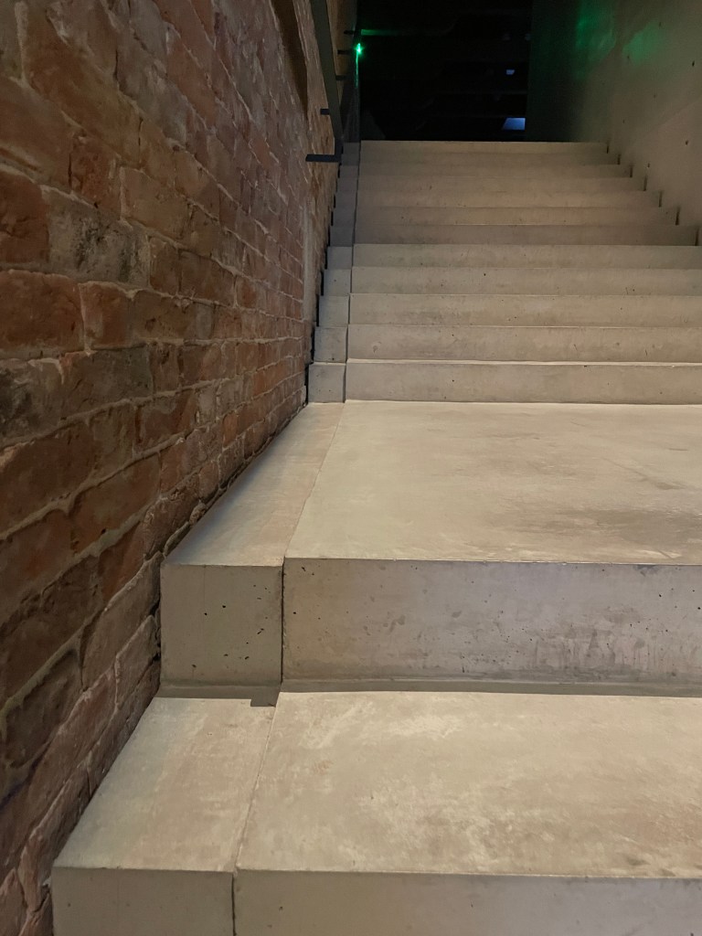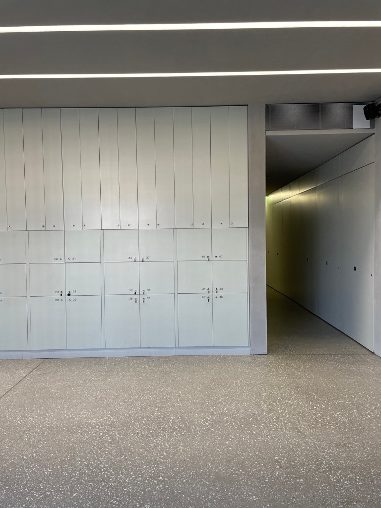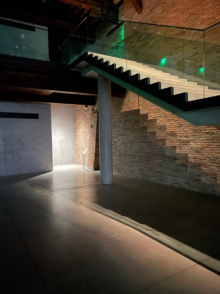 I walk in. It’s small, and the building is old, nondescript. But everything that has been inserted for the gallery is pristine, beautiful concrete. And the gallery walls are phenomenally white and tall and they fill the space just so perfectly. Ah, see, I can do this. We can do this. I mean look how simple and beautiful the desk is. And the dumb lockers in the coat check. They’re perfect. But then I touch the concrete, running my hand along as I walk through a door. I stop. This is Ando’s concrete.