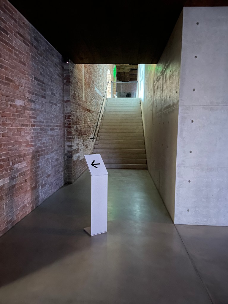 My aunt and I meet in St. Mark’s Square, our meeting spot everyday since it’s halfway between our rooms, and make our way to the Arsenale. We have to stop a few times to rest. It’s particularly warm and humid this day. My uncle stays behind, closer to the room so he can rest. He had a knee replacement several months ago, so it’s a little harder for him to be out and about all day. He probably wouldn’t have liked this anyway. I showed him the photos of the Tomba Brion and he was completely uninterested. To each his own, I guess.