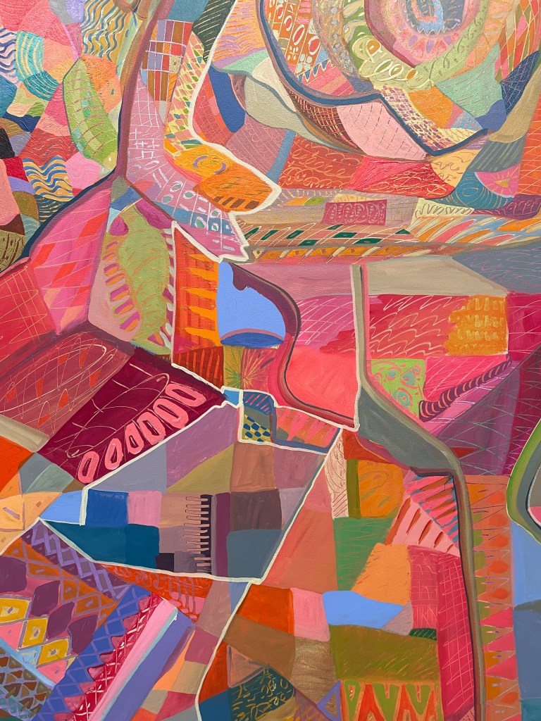 It’s so wonderful. I have always loved her work. And I’ve enjoyed her personal image as an artist: her eye makeup as dark and dense as her enormous, black-painted pieces; her attire as eclectic as the collages she puts together. She and her art were one. Unlike Bruce, she found a medium and explored it her entire life.