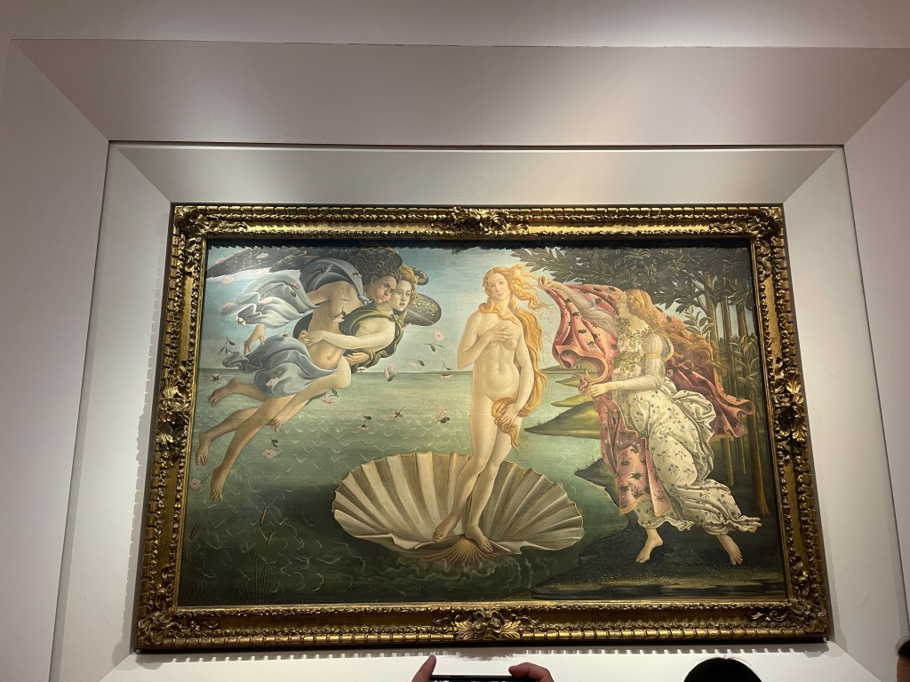 Some of the masters of the Renaissance. Very excited about Botticelli, Caravaggio. All paintings I had to memorize and their location—Uffizi—and I’m here.