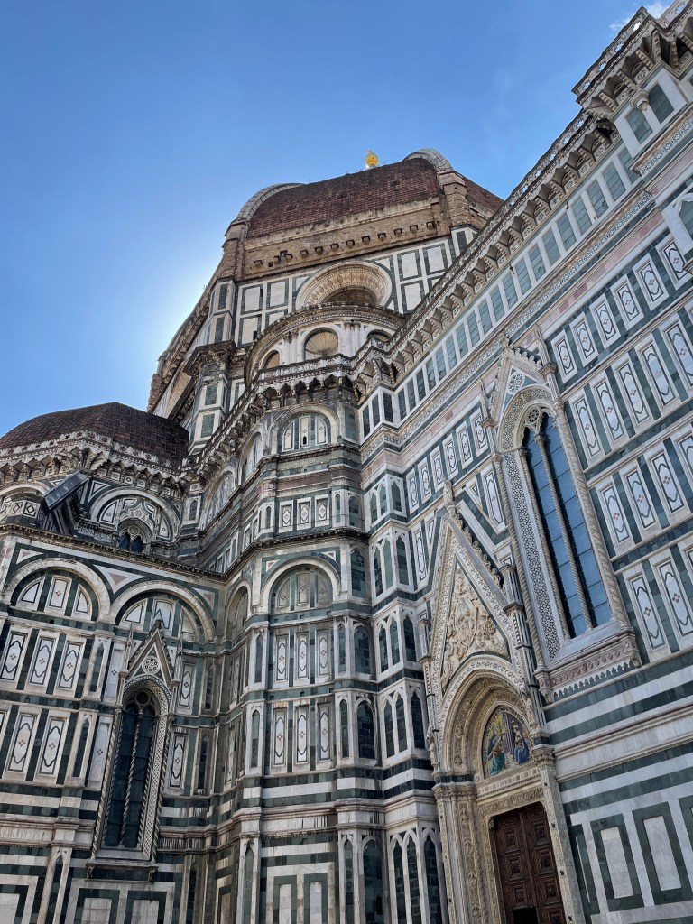 I love where this is located, on the street, so close to everything. And it’s so incredibly beautiful. Different from the Cathedral in Milan, more like a patterned tapestry, a mosaic. I’ve learned about Brunelleschi in every art history, architecture history, art class I’ve ever taken. I love it.