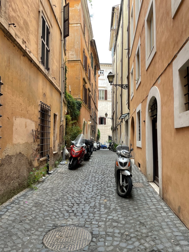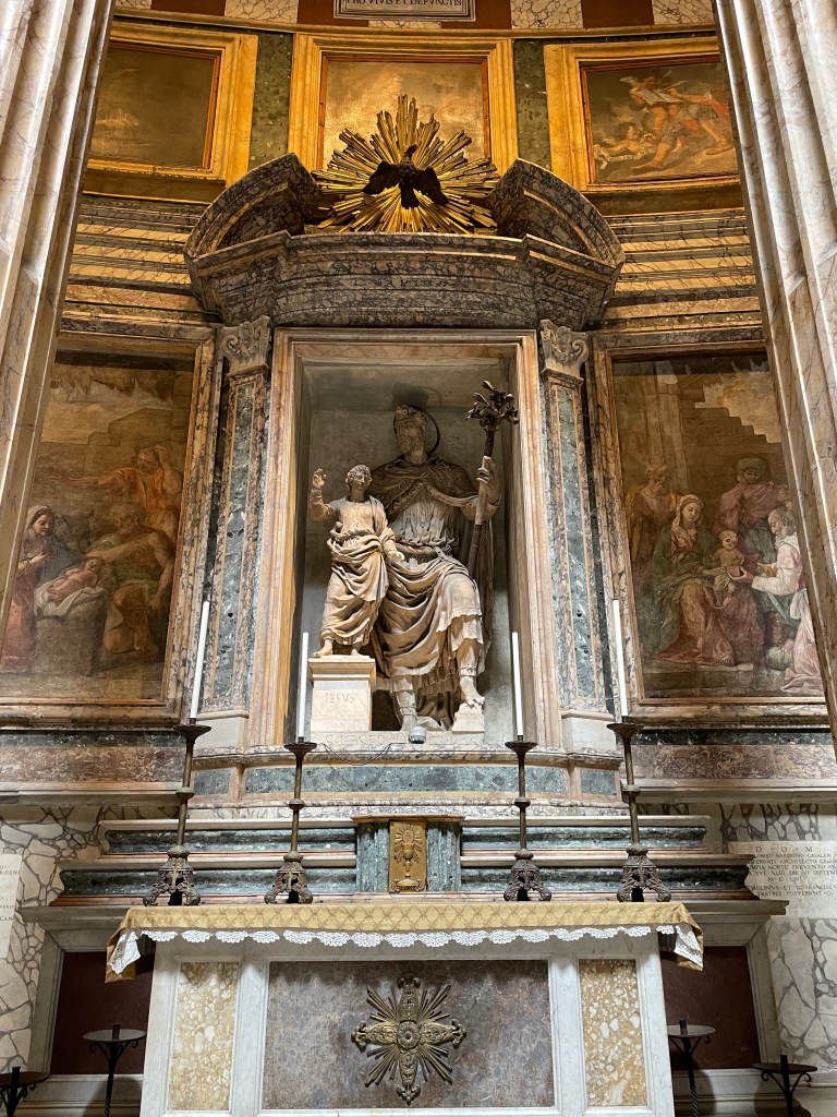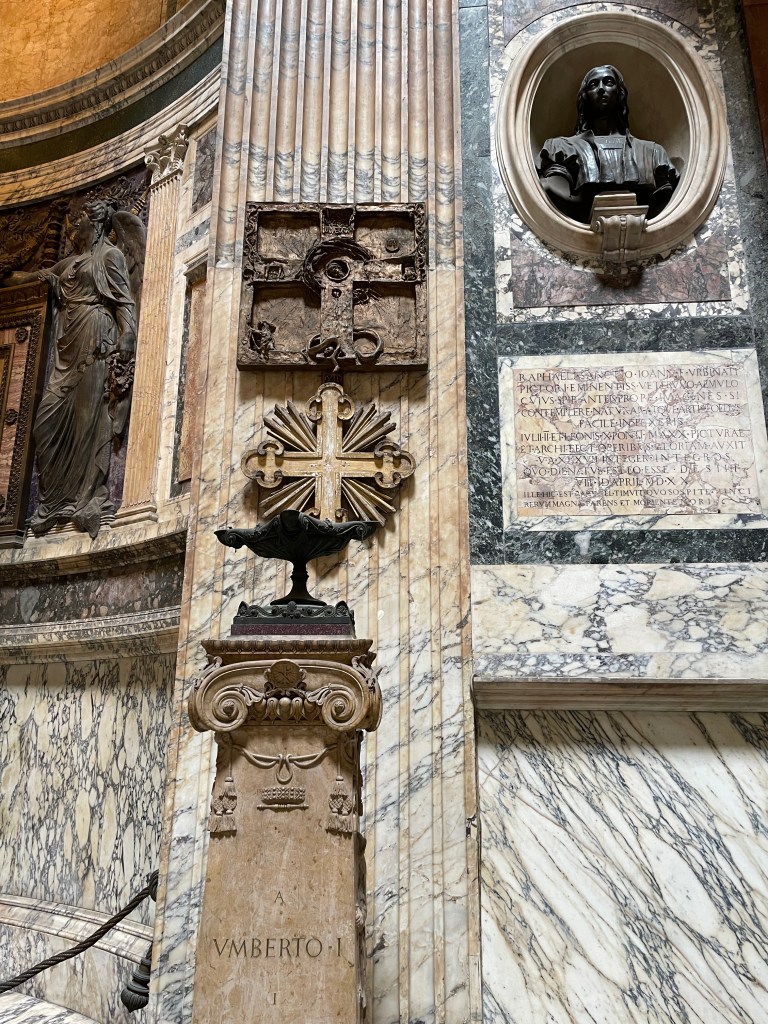 I stop at every niche. The tomb of Raphael. The tomb of Vittorio Emanuelle II. The dome. The oculus. A guy leaning against the post for the guide ropes makes them move all the way down the line. Someone lets their baby run around screaming. Another guy taking a selfie in front of the tomb of Raphael. Can you all please stop for a second and feel the weight of where we are? Everyone who made this. Everyone who let it survive. Almost two thousand years old. Anyway. I’m being annoying. Annoying myself with being annoyed with everyone else. Stop being so serious all the time. Jeez, it’s exhausting. But honestly, this feels so special.