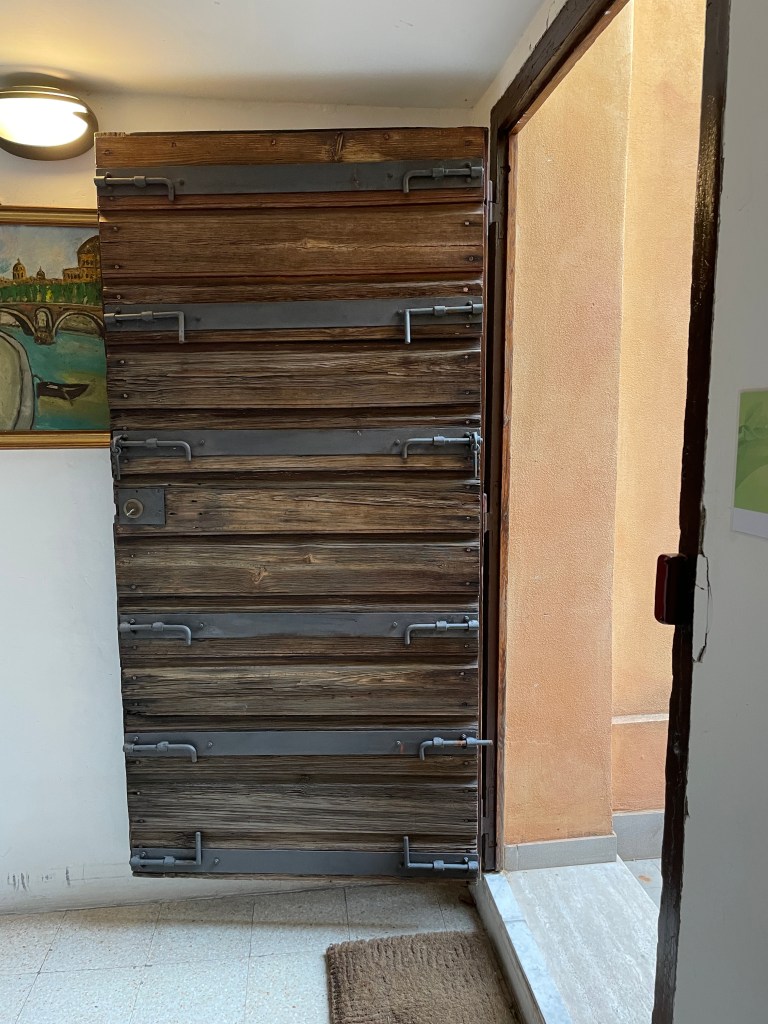 Finally I walk down a quiet street. My phone says I have arrived. But nothing but old buildings and large wooden doors. I go up to my building and push the button to be buzzed in. A nice lady finally lets me in to a dark entryway and takes me to a room to check in.