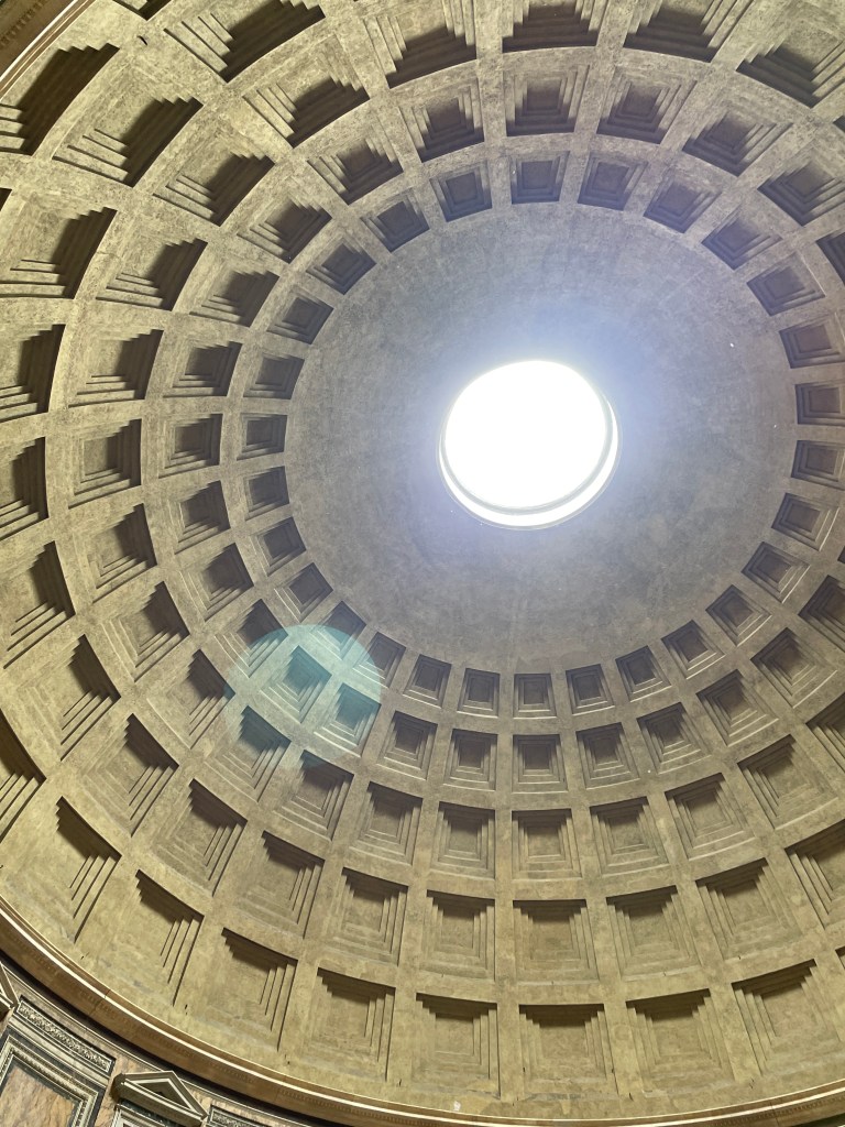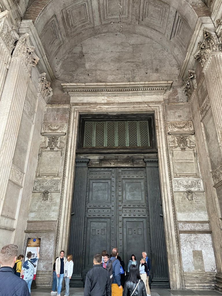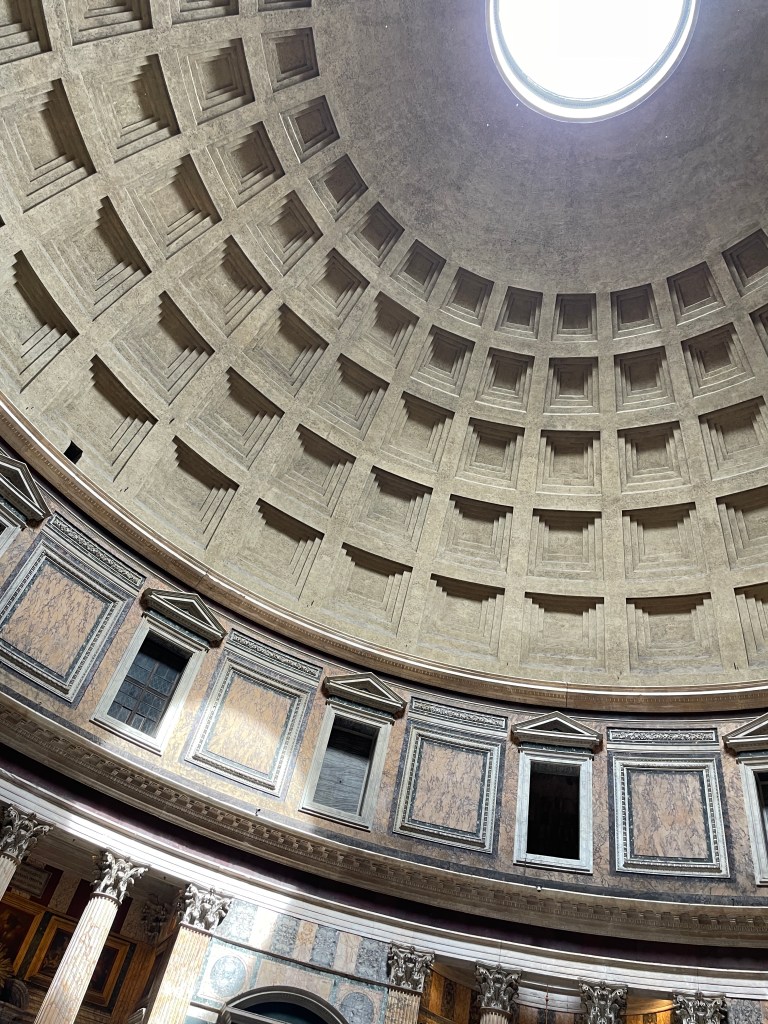 I walk up and show my tickets. I walk through the enormous bronze doors. The coffered ceiling looks so perfect it almost doesn’t look real. Almost two thousand years and still absolutely perfect.