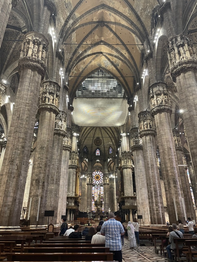 I walk in and can’t really fathom how enormous the space is. Immense. It’s honestly unlike anything I’ve experienced. And then to think construction began in 1386 and took nearly 600 years to complete. It’s time and craft and material and labor that my brain cannot comprehend. And that we are walking on the roof of this place. Who gets to make a stone roof anymore?
