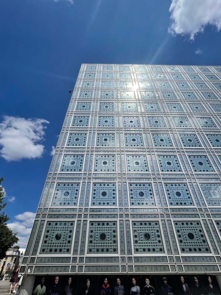 At some point along the journey to the park I happen upon Jean Nouvel’s Institute du Monde Arabe. Just walked up to it. It’s a really incredible building, but the best part is the south western facade, which is made of a series of apertures that open and close to let more or less sunlight through. Amazing.