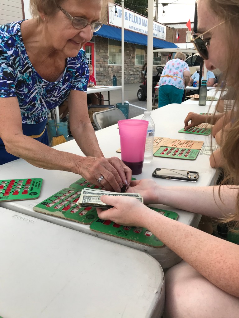 Some of the festivities started the next day. A visit to the butcher to get jerky and kolaches and rye bread—all amazing. Bingo in town that night (I won four times, a total of about $20. I handed the third winning card to Chaderlee’s nephew and told him to shout bingo. I think he was hooked after that.) and dinner at the Sokol Hall. Pork roast and kraut and rye bread and green beans. I haven’t eaten like that since my mom cooked dinner for me. She would have loved this.