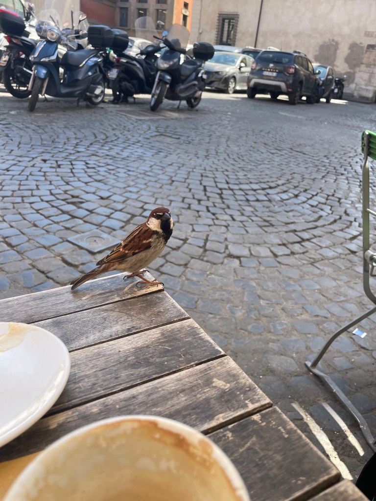 The sandwich is so big I decide I’ll eat half now and half for dinner. I lay down. Something about this place feels like home. Maybe it’s the white walls, the white sheets, the texture of the beams, the sunshine through the skylights. The quiet space with the sounds of traffic outside. I want to rest here, check out for just a minute. That’s also part of the process. Rest. But only for a moment. Because Rome is right outside my door.