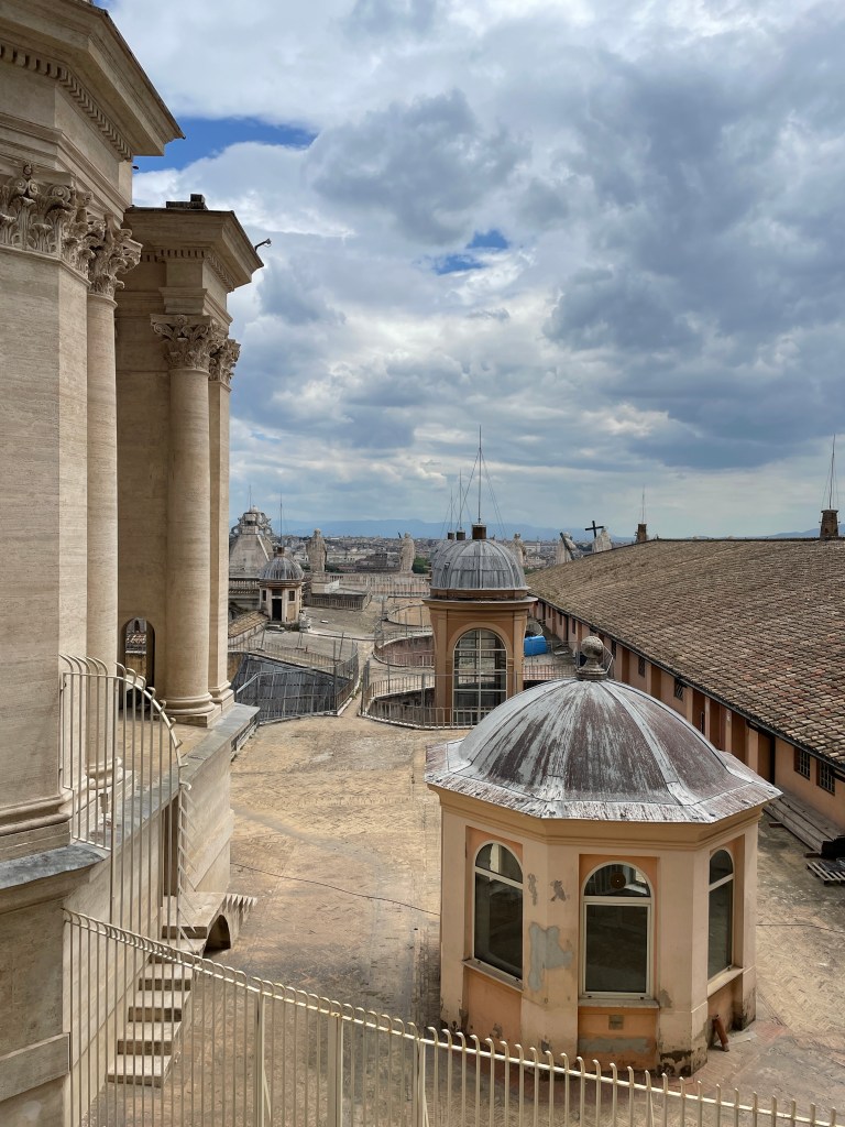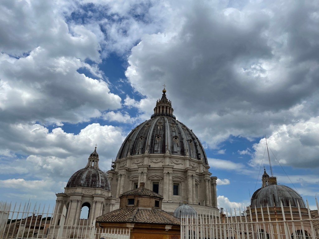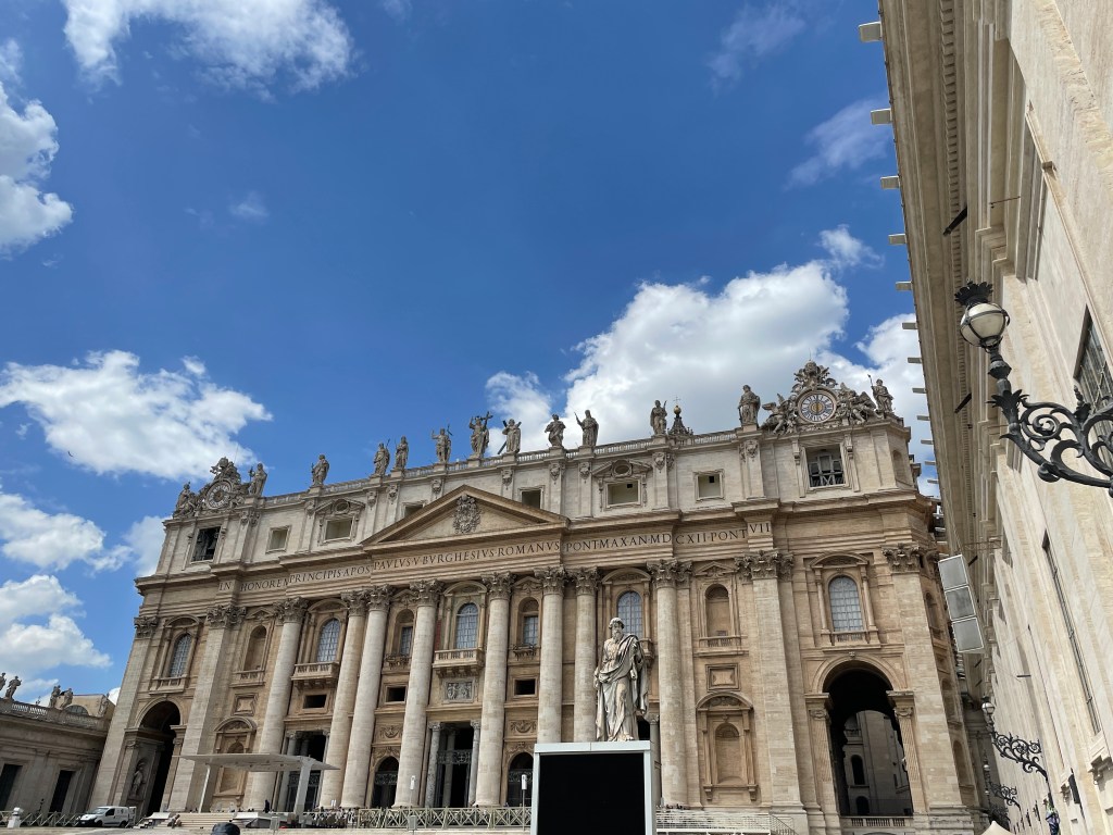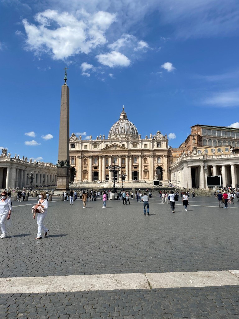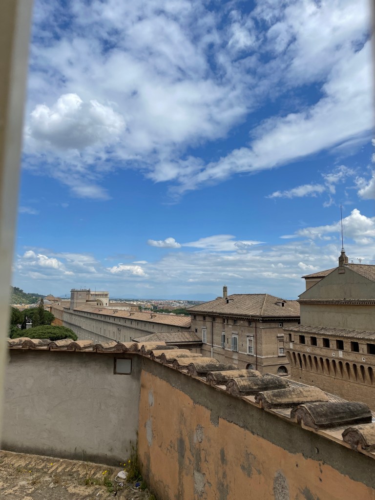 Some very old ladies casually skip in front of me. They’re moving very slowly. And one is coughing, coughing, coughing. Without a mask. They move so slow there’s a gap ahead of them in line, so I just casually walk ahead of them. I don’t want COVID from the Vatican please. Coughing in public makes me so uncomfortable now.