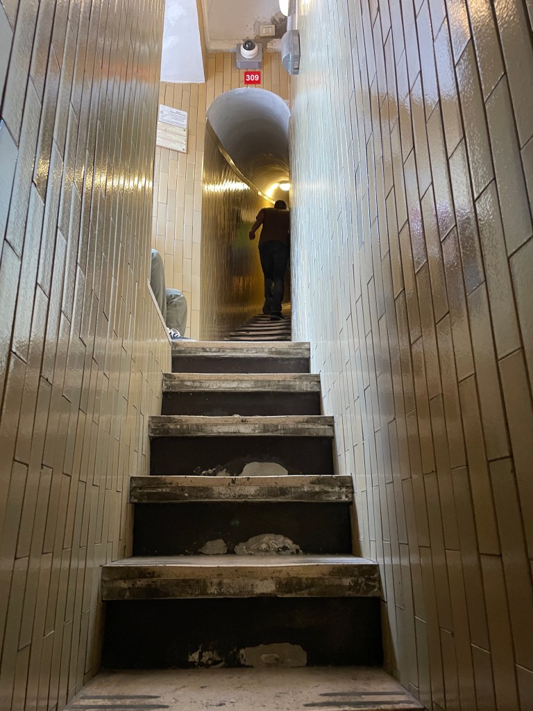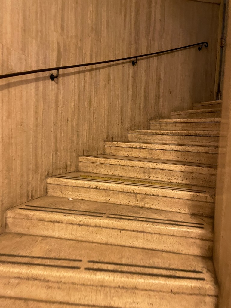 But damn this is a lot of stairs. I feel like I’m going to suck this N95 mask down my throat I’m breathing so hard. I don’t know why I’m going so quickly, but I am.