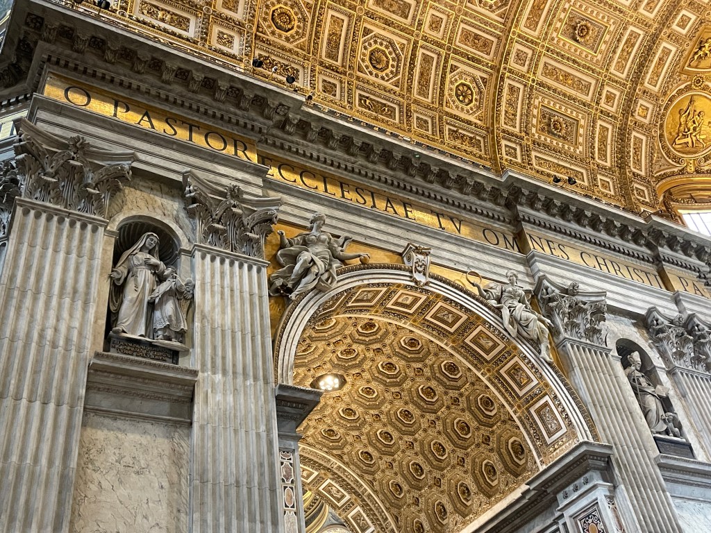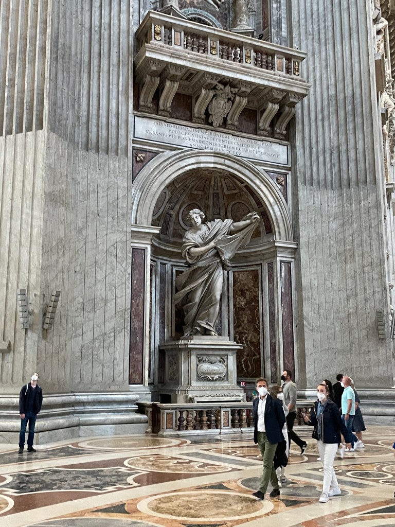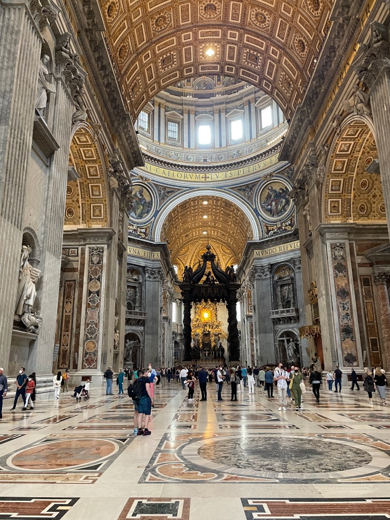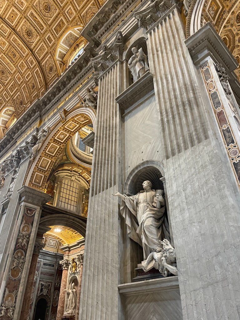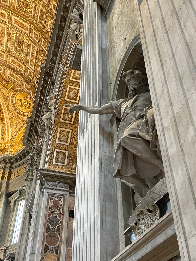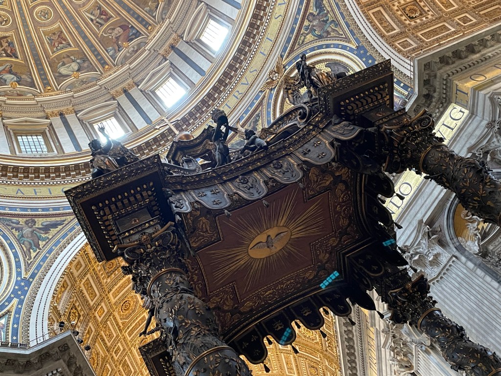 Anyway. I get to the square. It’s always felt bigger in pictures…I decide I’ll go in. Bernini’s Baldacchino. I’m not a huge fan of Baroque, but that piece has always fascinated me.