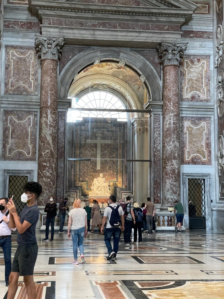I don’t have words to do it justice. Michelangelo was only twenty-three when he was commissioned to do the work. A masterpiece. There is something so quietly human about it. It’s smaller than the statues of the popes. It’s smaller than almost anything in the entire space. And yet so, so powerful. A mother holding her son’s lifeless body.