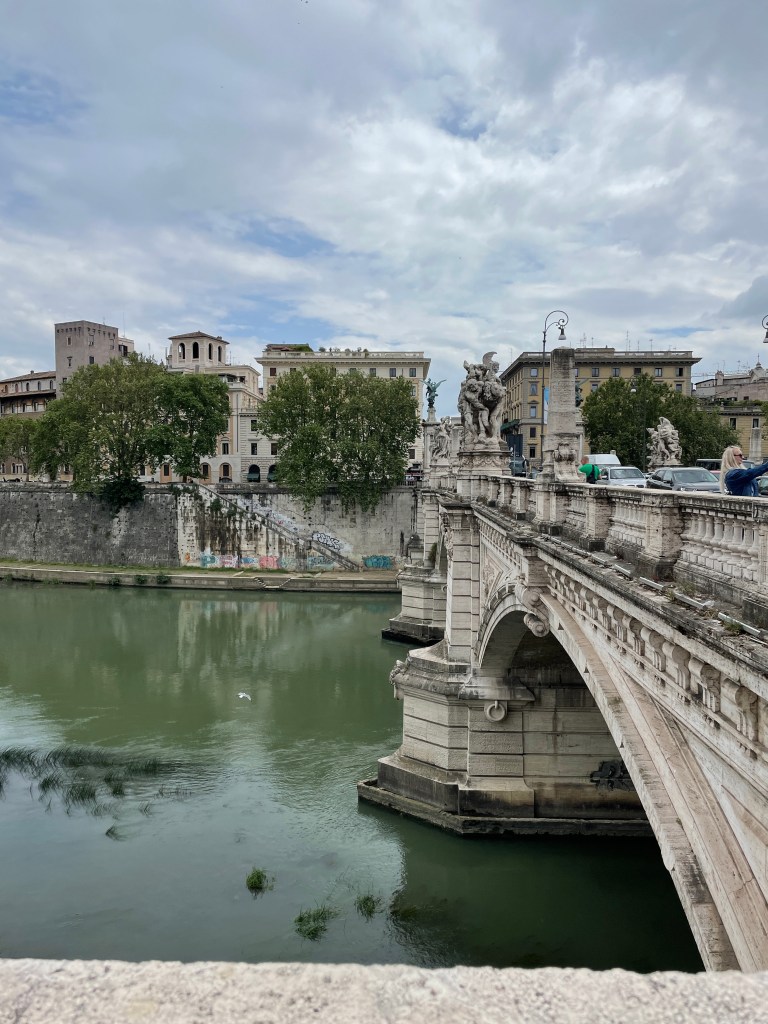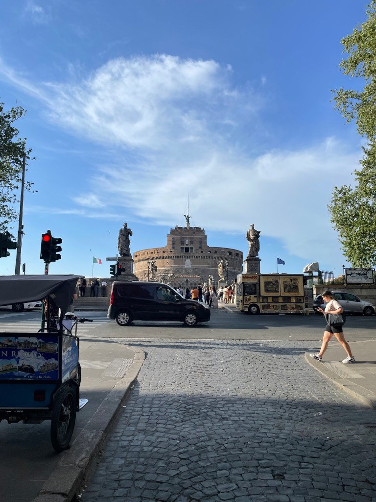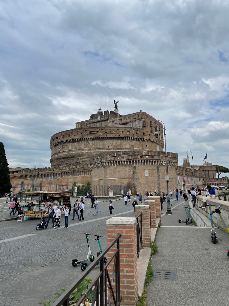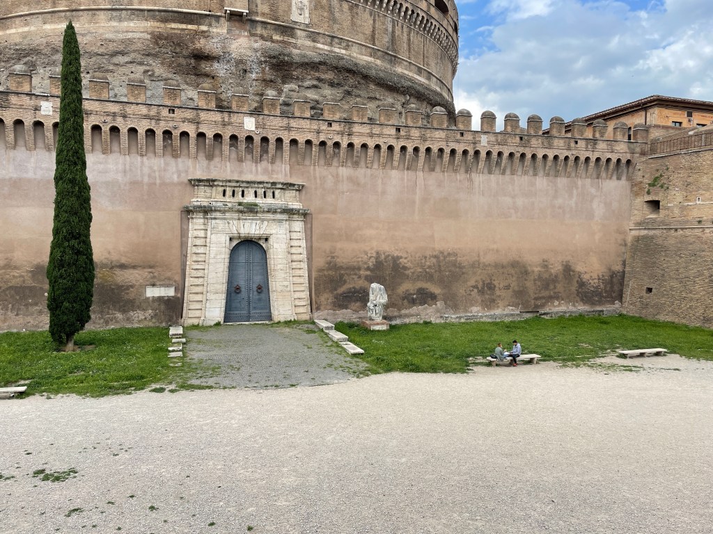 I’m so damn sweaty from that hike up to the dome. And I’m hungry. But I head over to the Castel Sant’Angelo. I can’t really figure out why I want to go. It’s not particularly beautiful. I think the history of it is interesting. Maybe that’s enough.