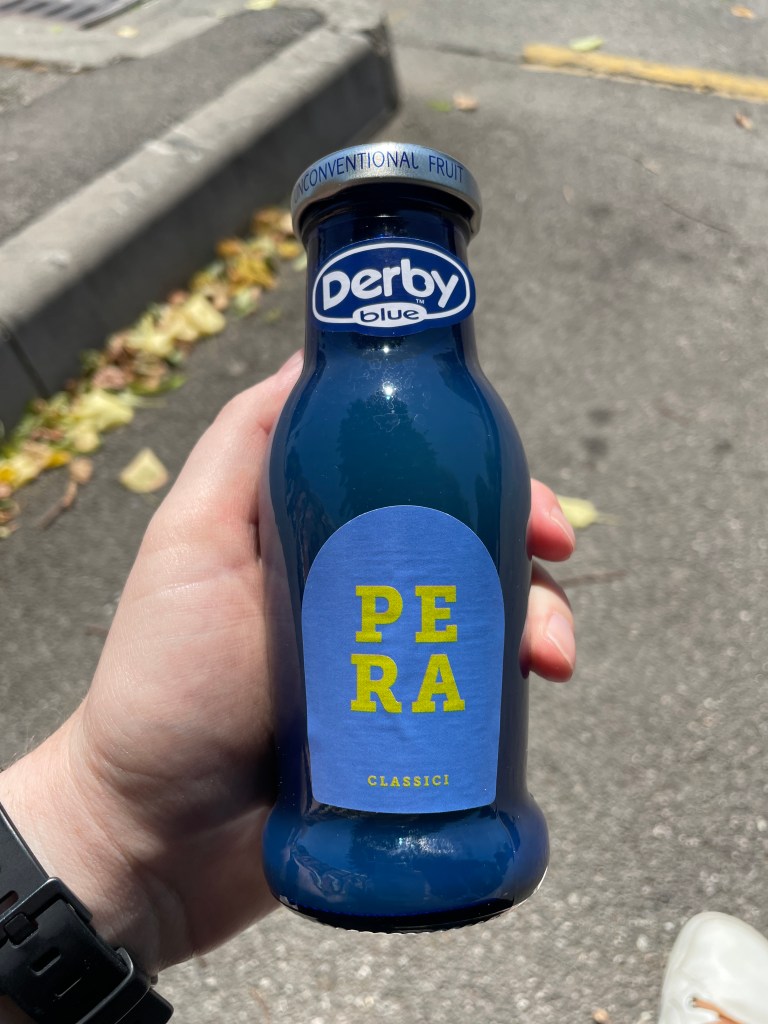 I stop into the small deli and grab a piece of pizza and pear juice, which is something I’ve never had, but is amazing. Back to the stop to wait.